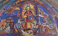 vitrail, sous l'influence alors de Georges Rouault. Giotto et El Greco influencèrent aussi l'oeuvre de Evie Hone, finalement plus que l'enseignement de Gleizes. Son oeuvre prit à partir de 1937, un aspect religieux plus développé, car c'est alors qu'elle se convertit